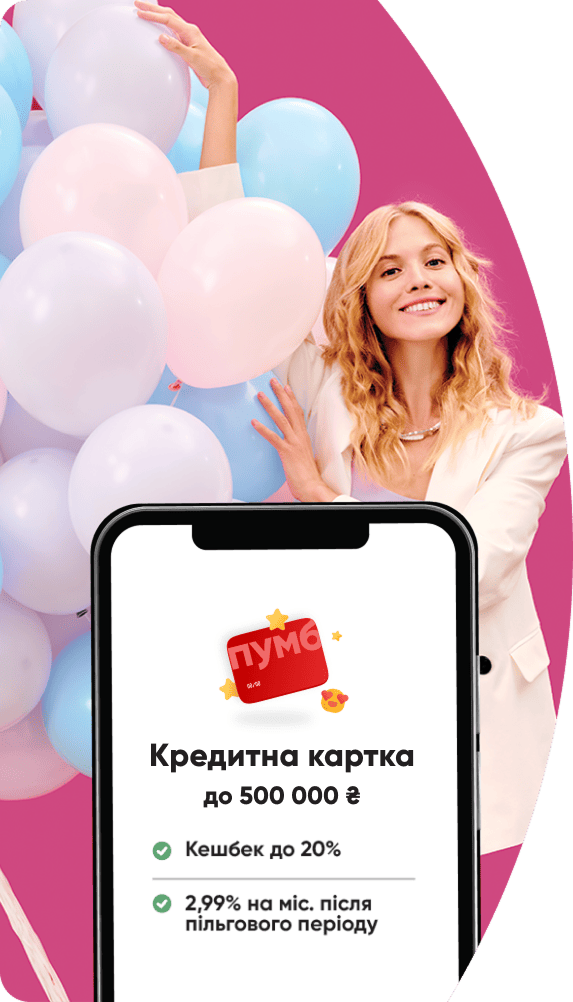 Для деяких кредитів необхідно мати мобільний застосунок. Ви можете прямо там за кілька хвилин створити картку й стати клієнтом ПУМБ.