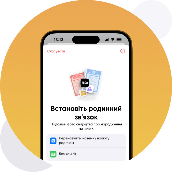 Family ties can be established both in a FUIB branch and in the PUMB mobile app.